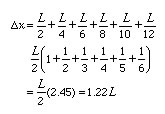 Suggestions for Presentation: If the blocks have been pre-stacked by the lecture demo technician, you might ask how the blocks can stay balanced when the top one is beyond the bottom block. Also ask why the extensions get smaller as you move toward the lower block. What if you had an infinite number of boxes. How far would they extend? (An infinite distance) Twenty-five blocks would extend about 2L.