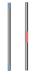 Suggestions for Presentation: A popular presentation of this demonstration is to tell the students that you are going to have try-outs for the Purdue Golden Girl. (This pretty much dictates using females, but you can adjust the presentation accordingly if you wish to use a male.) Choose a student and hand her both batons to see if they appear to weigh the same. Then take back the red one and ask the student to grasp the blue baton at its center and wiggle it back and forth as quickly as possible. Demonstrate what you want by your doing the same thing with the red one. Encourage the student to do it as fast as possible. (A little fun derision is in order here. The fact that you can wiggle your baton so much faster demonstrates your superiority in this matter.) Then exchange batons and repeat the process. Ask the students if they can suggest a reason for the results.
