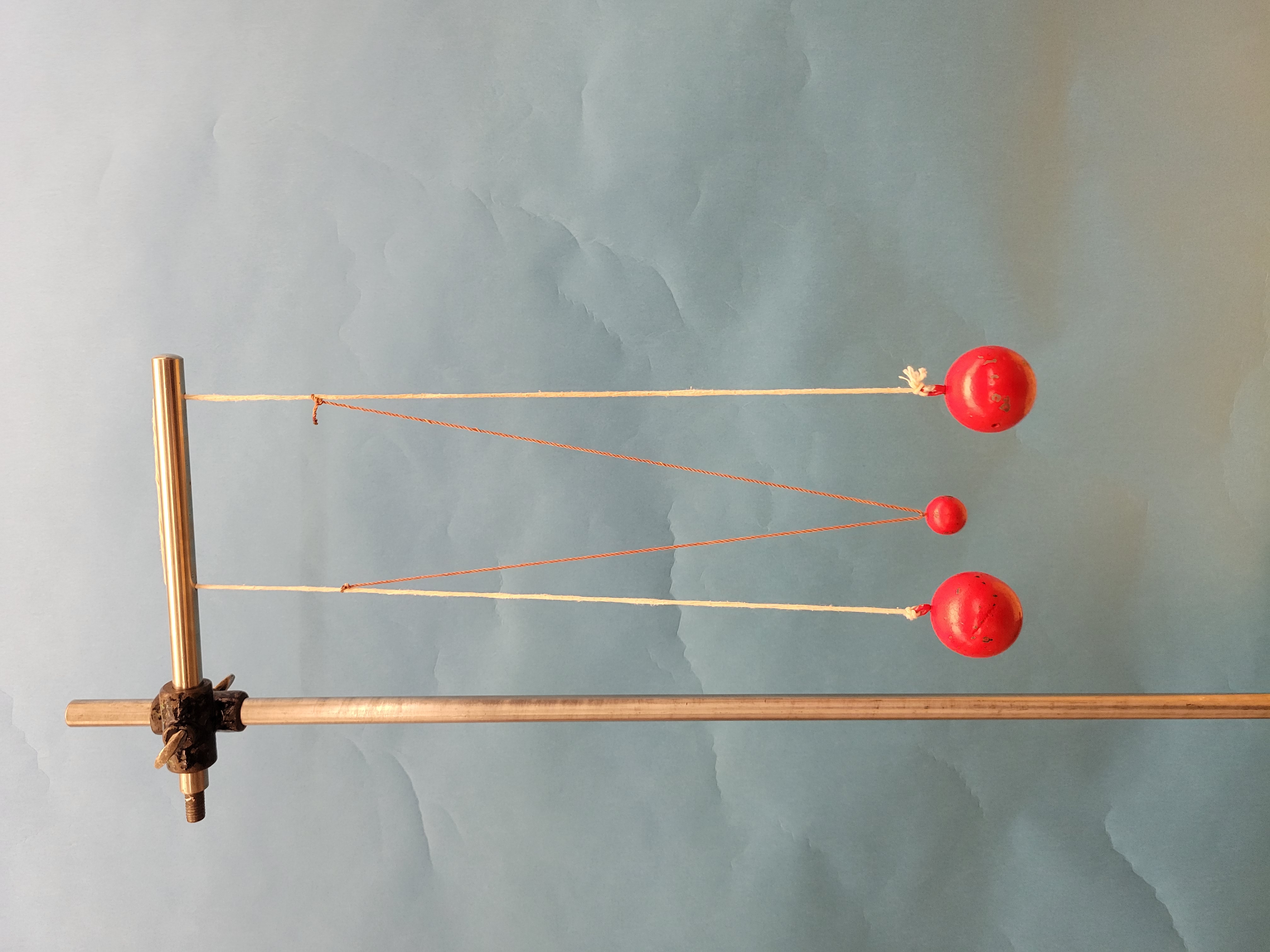 This demo shows constructive and destructive interference using a pendulum supported by two other, separate, pendula.