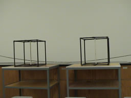 Directions: Set the frames on the table so that the two vertical slots are in the same direction. Take the spring and shake it up and down in the same direction as the slots. Then shake the spring in a direction perpendicular to the slots. Finally, turn the second frame 90 degrees to the first. Show that no matter how you shake the spring, no wave gets through.