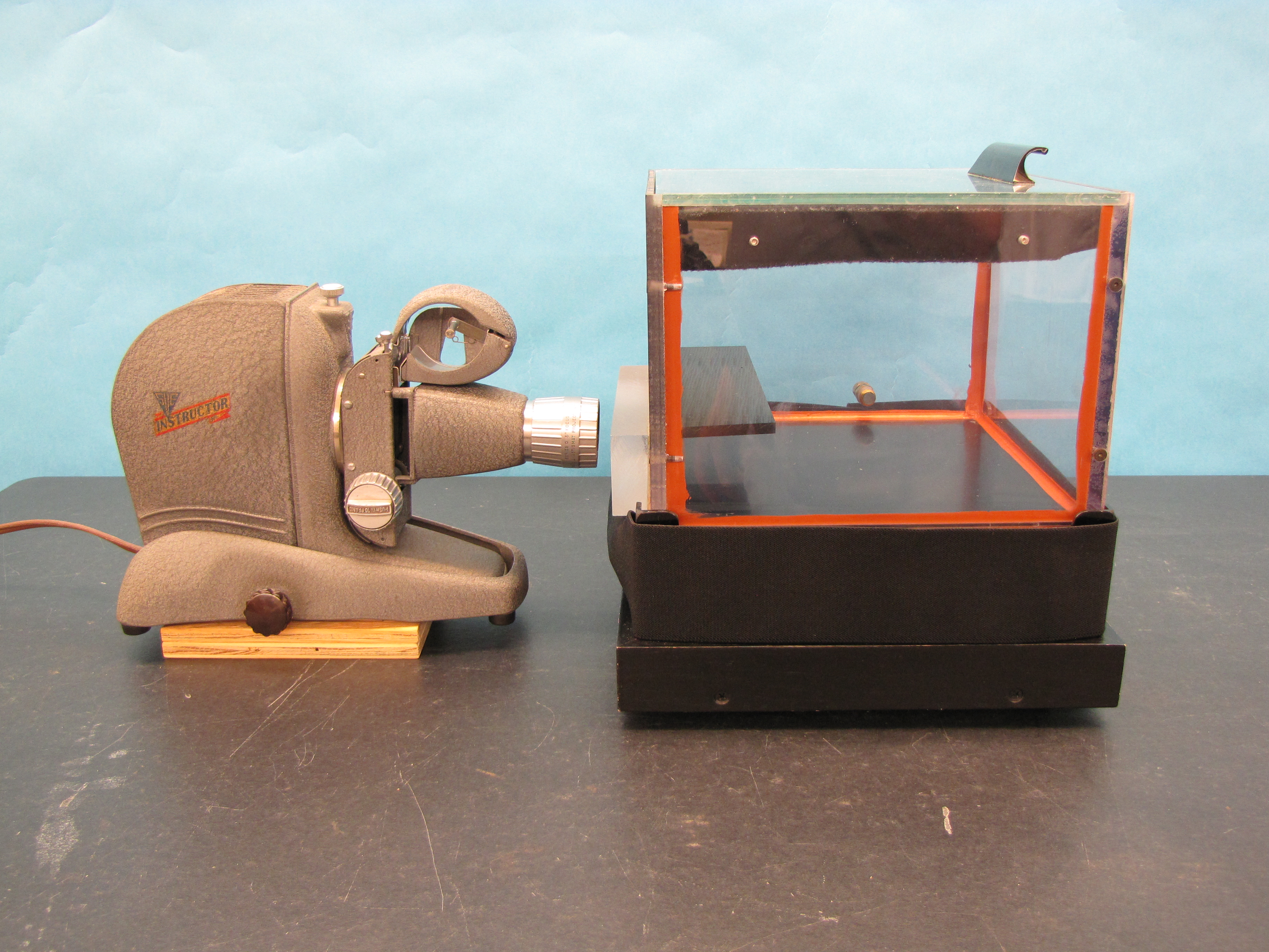 Place the box on top of the tray of dry ice. After about thirty minutes, visible tracks may be seen and can be projected by means of the overhead camera system. Tracks may be seen even if there is no source placed in the box. Ambient radiation seems to be sufficient.