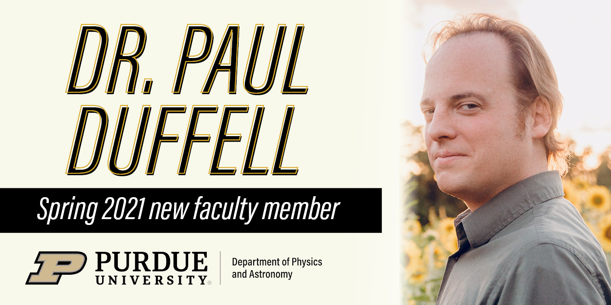 Dr. Paul Duffell joins the faculty of the Department of Physics and Astronomy at Purdue University